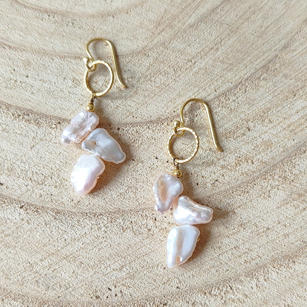 Oorbellen met robijn, saffier en barok parels goldplated. €129,95