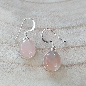 Dit mooie set oorbellen is handgemaakt van sterling zilver 925 en ingelegd met gladde rozenkwarts stenen.