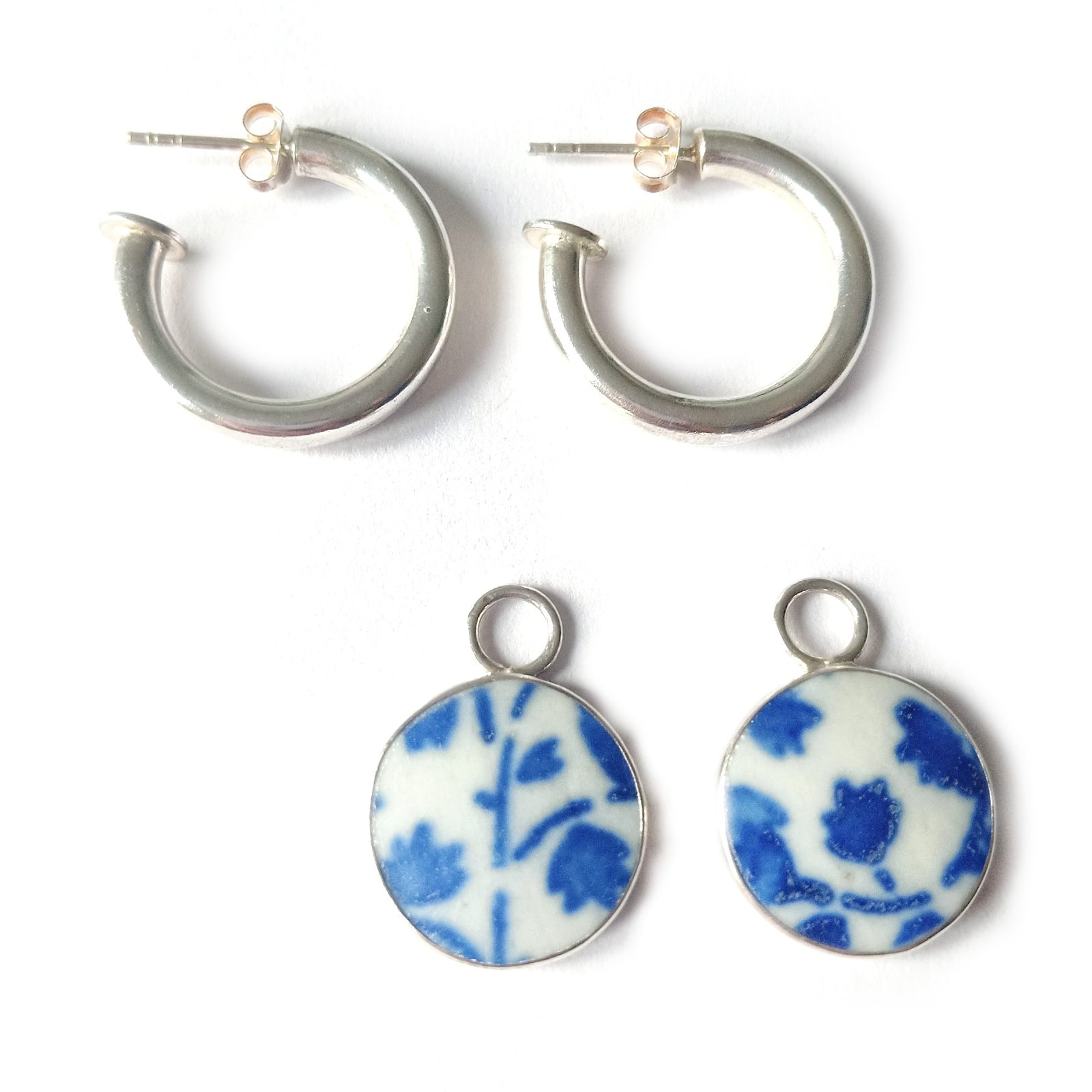 Oorbellen zilver Ming Jewelry - Oorringen met porseleinen Ming hangers €69,95