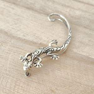 De onderkant gaat door je oorbel gaatje en de rest van het sieraad gaat achter je oor langs omhoog. Zo blijft het sieraad stevig zitten.