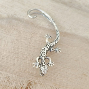 Deze super mooie grote gecko klimt over je oor omlaag.