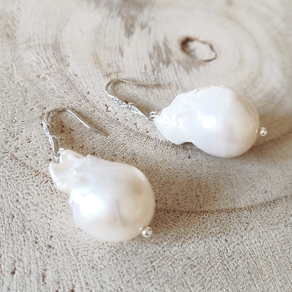 Oorhangers met paars-zwarte parels, zilveren oorbellen parels