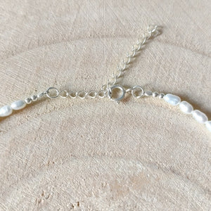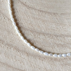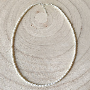 Deze mooie ketting is handgemaakt van kleine parelkraaltjes.